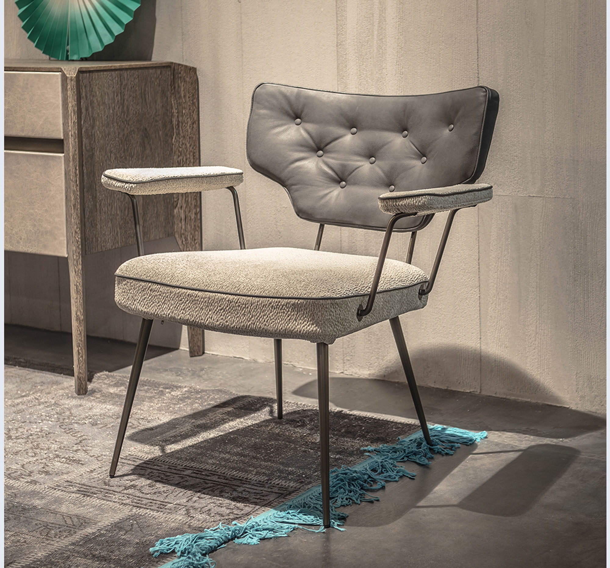 Twiggy是一款多功能的扶手椅,带有一种时尚的复古风格,灵感来源于一种个人时尚风格。在皮革或织物上的棉背,可以与座椅和手臂的装饰相匹配。滚边是一种高级的高级定制的细节,在周边,和背部的材料是相同的材料。这种腿有云母棕或钛金属。