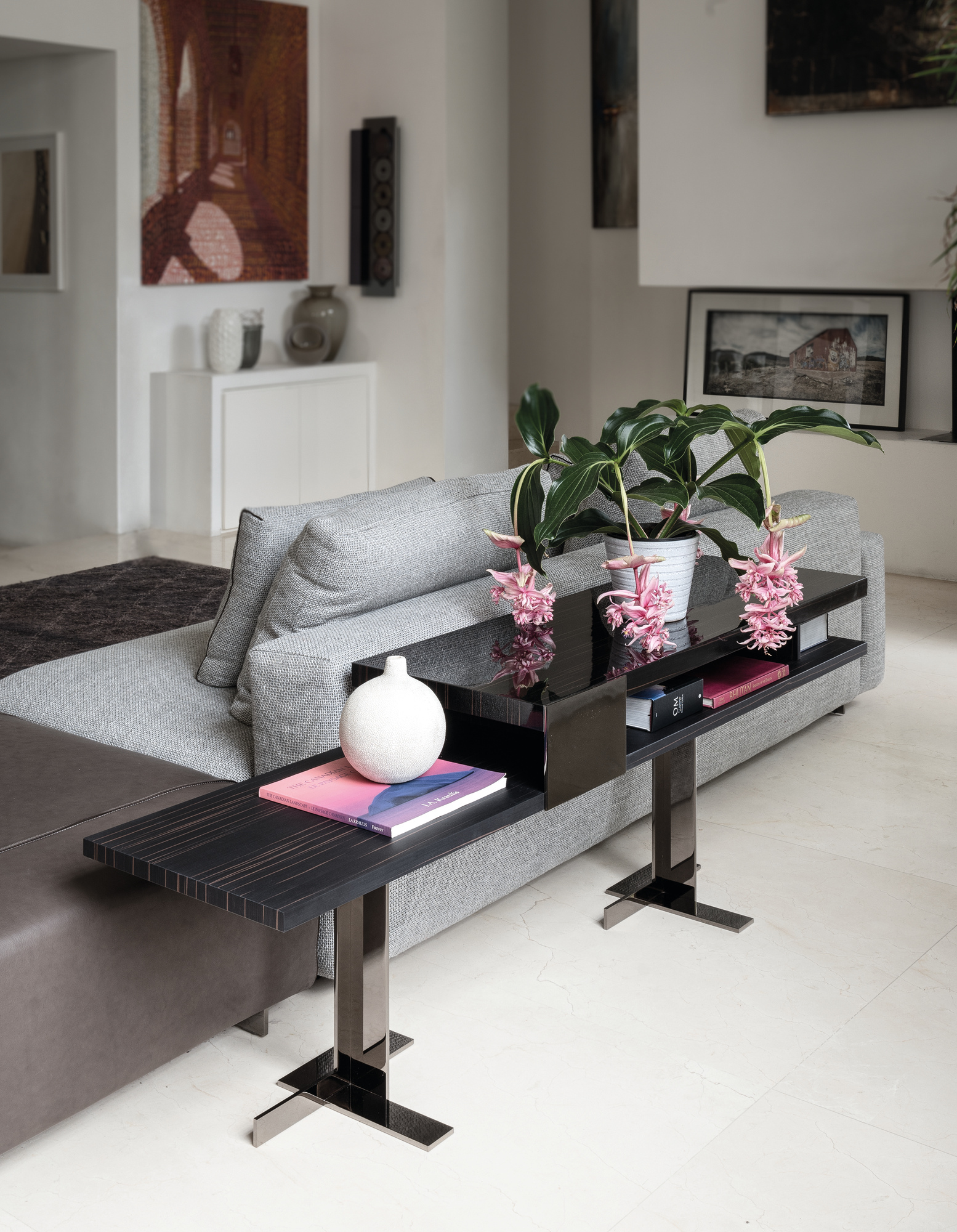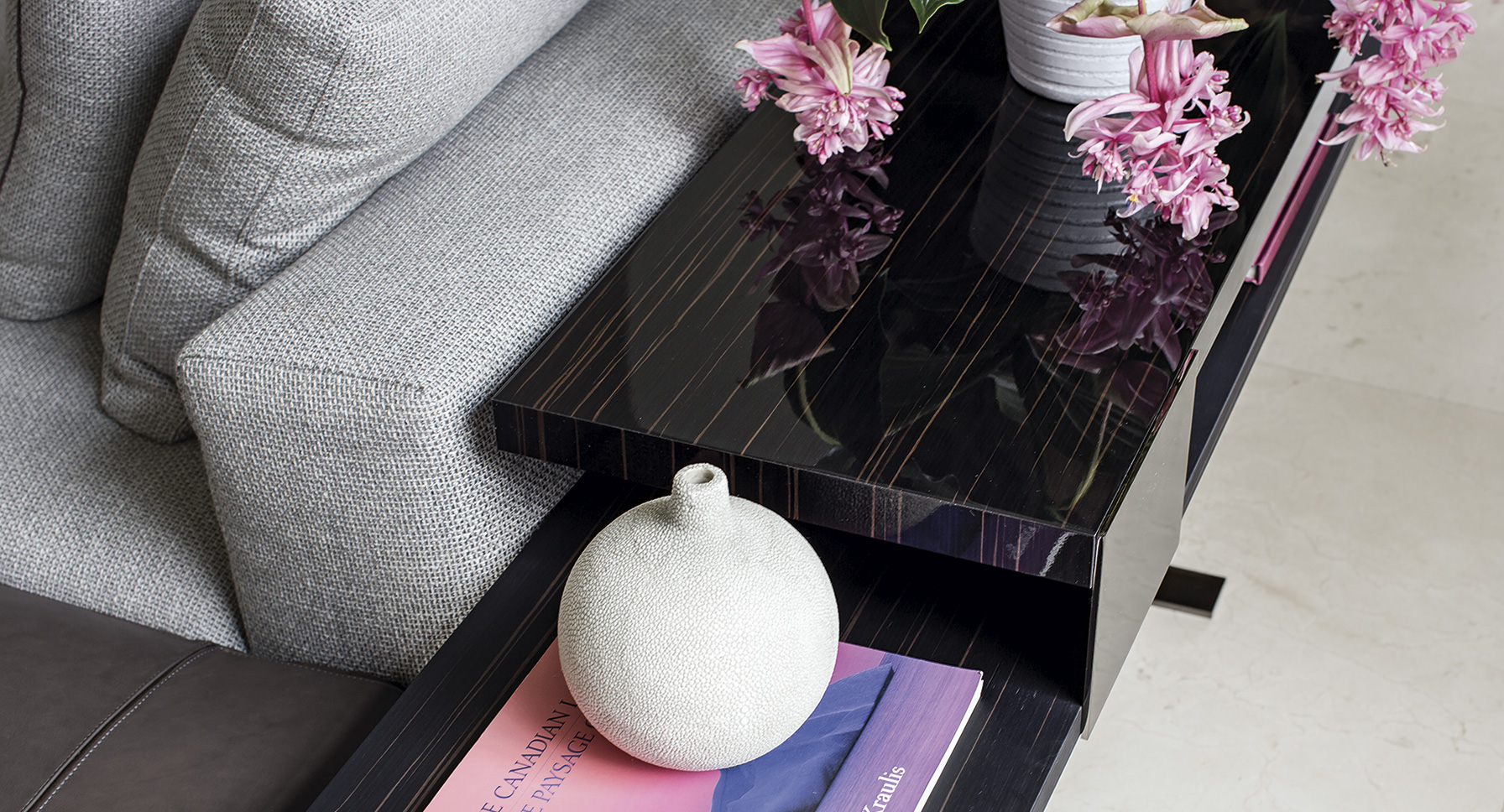多种配件材料的爱尔斯是多功能的:可以放在墙边或沙发后面,而小桌子可以用作沙发扶手旁边的边桌,也可以用作服务桌。