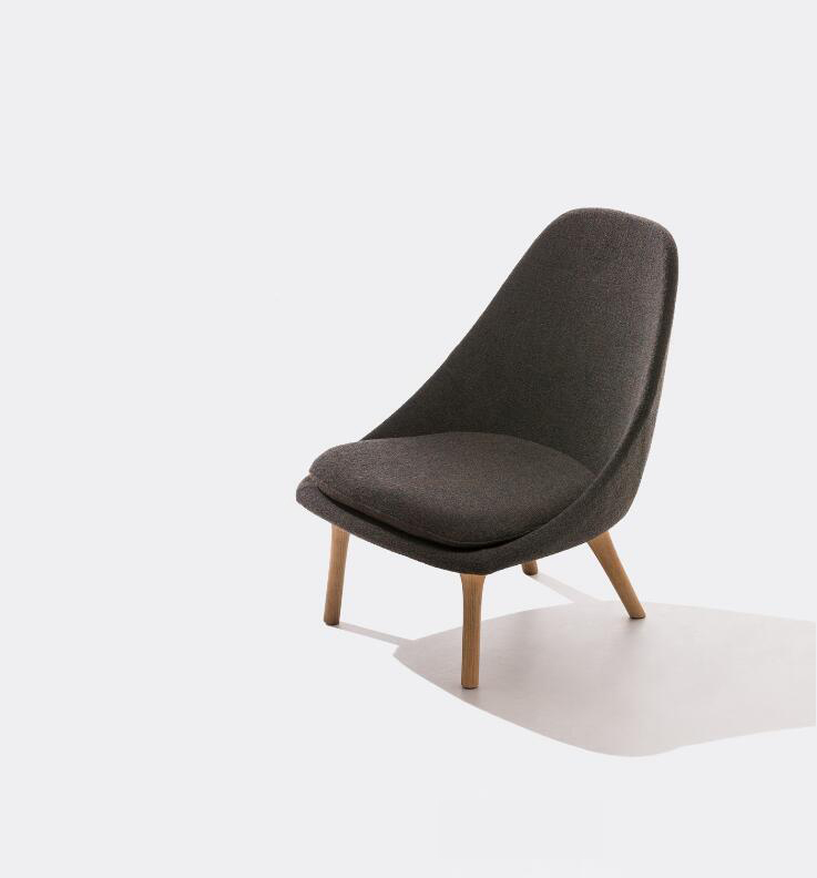 Tundra座椅采用周身软包的设计搭配实木椅腿,两种材质融合的浑然一体,就好像是完整切割下来的形状。达到这样的效果绝非易事,我们首先用模具将太空记忆棉塑造出应有的造型,并在一块木材上切割出四条椅腿,低位的座椅和半圆形的周身,外加可拆线的舒适椅