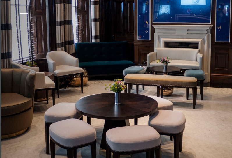 这里的灯笼采用抛光青铜制成,配有美国黑胡桃木。