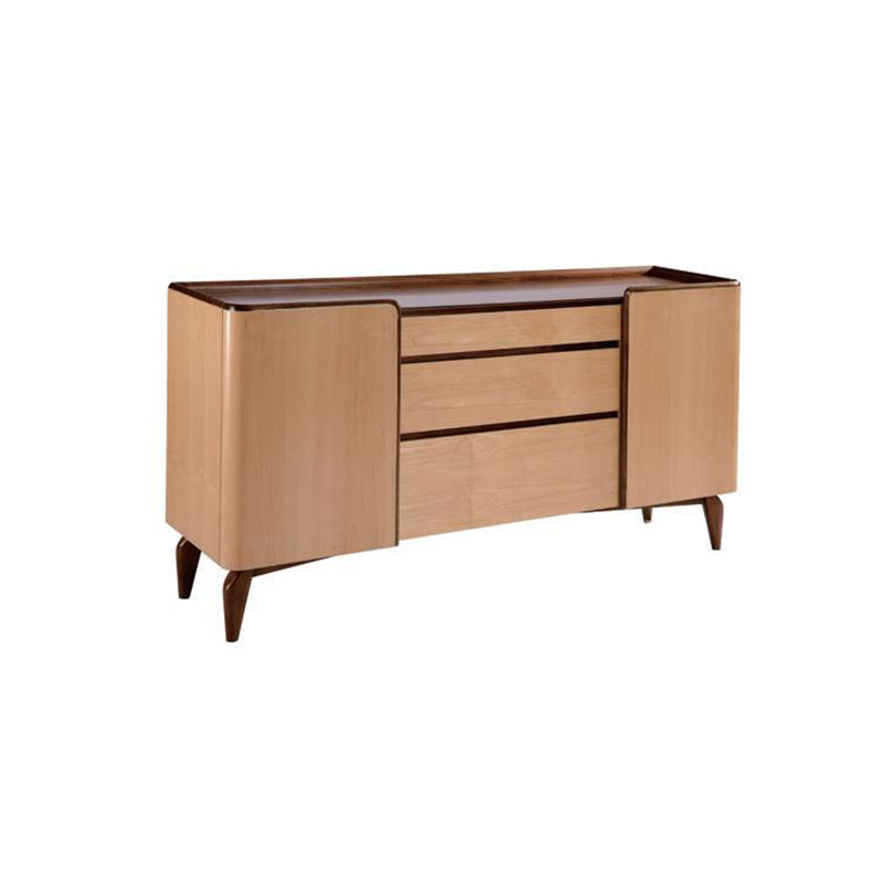 餐边柜提供了一个非常实用的存储空间,在最上面的抽屉里有科学划分的格子,可以整齐摆放各种规格用餐银器。整个柜身采用枫木饰面,辅以黑胡桃点缀,展示其现代优雅的气质。