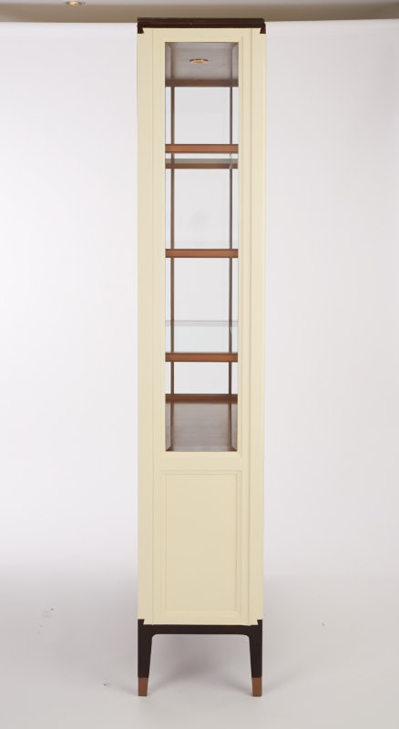 采用燕尾榫造型的拉手,符合成年人手型,不费力即可轻松打开;进口隐藏式铰链;铜脚,赋予中式韵味的同时以防磨损。直线的简洁设计同时满足展示和收纳的功能。