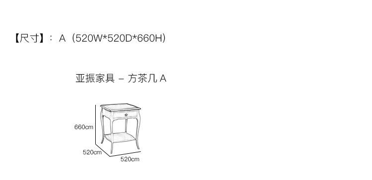 亚振家具 - 方茶几 产品尺寸/示意图