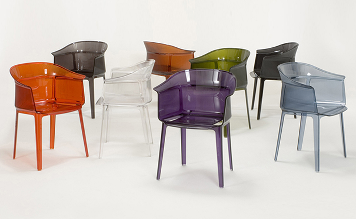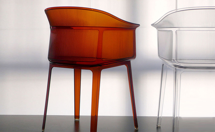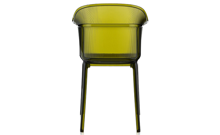 Papyrus Chair(纸莎草椅)是由Ronan & Erwan Bouroullec法国兄弟设计组合于今年为Kartell公司设计,并且在本次的米兰家具展中进行了展出。该设计的灵感来自于一把结构鲜明的古老座椅Linear,座椅本身非常舒适且重量很轻。其共有透明、黄、绿、紫、烟灰、棕、蓝和红八种颜色。这把椅子结合半透明的脚架,脚架“打磨”纤细的卵石状颗粒,并延伸至整个靠背的外轮廓,线条柔软和舒适。和整个结构都是透光的。因惊喜的做工和颜色的运用,使其非常吸引人。
