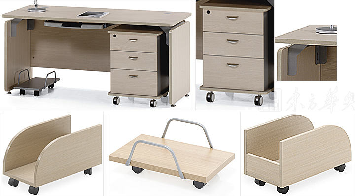 ※ 上图为产品背部展示图,有活动柜展示和侧柜展示,PP塑料键盘架,满足不同的办公需要。