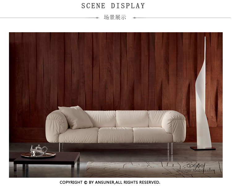 由意大利设计师Cini Boeri为当地家具品牌Poltrona Frau设计的软沙发Bebop,有两座及三座:Bebop 2-seater Sofa(比波普双座沙发)、Bebop 3-seater Sofa(比波普三座沙发),简洁圆润的设计线形,天鹅绒般柔软的舒适坐垫,底座和靠背框架采用山毛榉木,扶手则为白杨木,再覆以Pelle Frau皮革,沙发腿为镀铬钢管,看上去简洁高贵,优雅低调,关键是放在哪个环境下都不突兀,速配率超高。