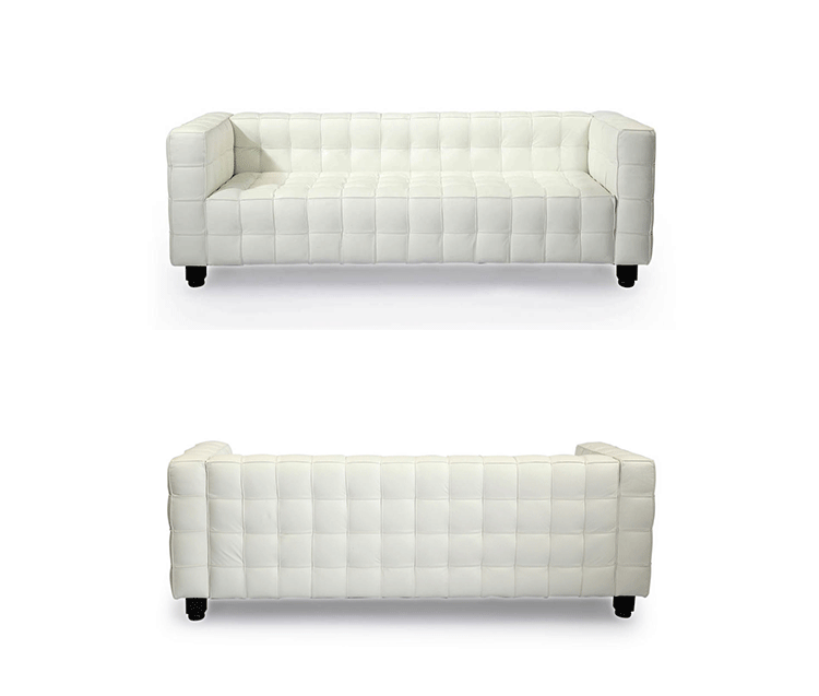 This high quality reproduction of the Josef Hoffmann Kubus Sofa features a handcrafted hardwood frame graciously lined with polyurethane foam.The surface is luxuriously soft to the touch, compliments of its premium 100%Top-Grain Aniline leather upholstery. This premium reproduction is generously proportioned to original full-scale size and cube count.Precision stitched & aniline leather piped tactile cubes create a thick body of cushioning that is so comfortable you’ll understand why this sofa has been a modern classic for nearly a century.For those looking for historic significance in midcentury modern furnishings,the Hoffman Kubus is a certain candidate.