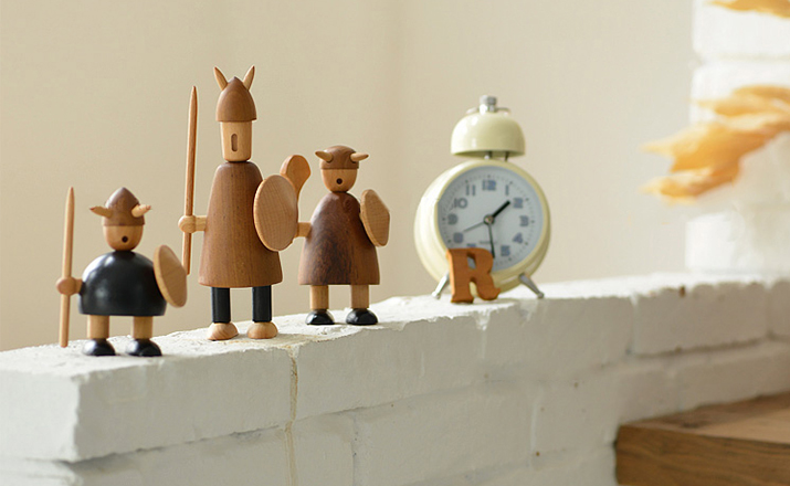 由于50年代的丹麦活跃着一股「斯堪地那维亚现代主义设计」风潮,延续低调简洁的风格并大量采用自然木材与传统工艺所迸出的美丽火花,设计大师Jacob Jensen也致力其中成为见证历史的大师之一。Jacob Jensen Wooden Viking(维京海盗)是经典的北欧形象,随着《加勒比海盗》系列电影的风靡,维京海盗在骁勇彪悍的传统形象里增加了俏皮、温暖、幽默的一面。这一组维京海盗形象为主题的北欧木雕设计,正是基于如此可爱的解读而做,摆在桌面上形成了饶有趣味的场景感,也是用来赠送的高档礼品。