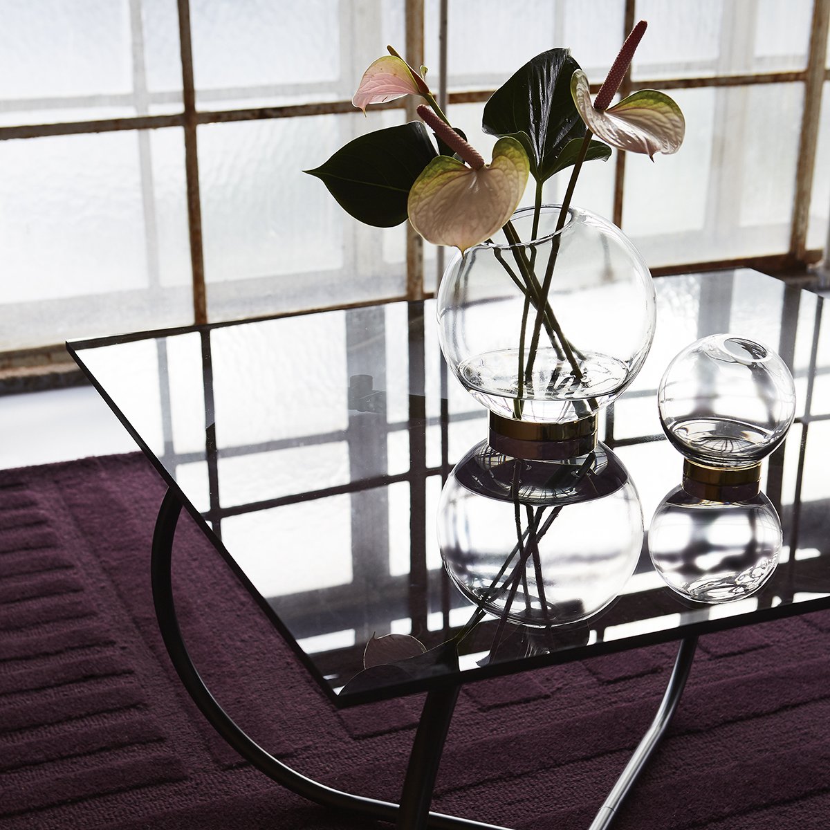 GLOBE 是一个优雅的器皿,由口吹玻璃制成,配上铜环底坐。您可以将它用作装饰花瓶或储物器皿。