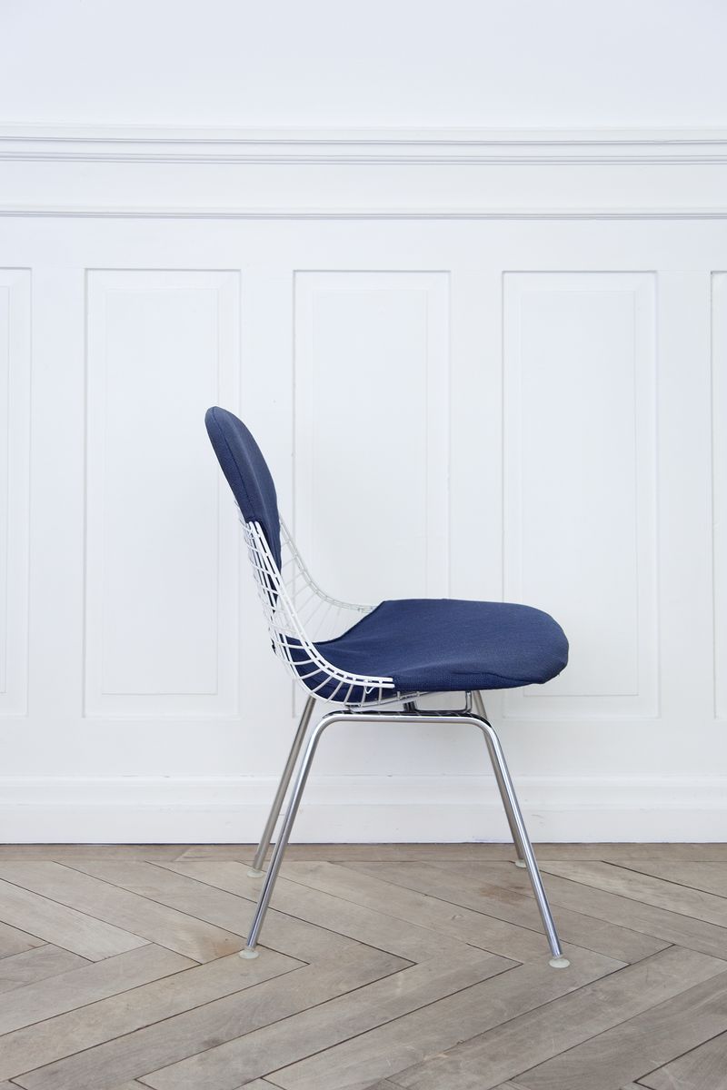 Charles & Ray Eames 1951 年發表的 Wire Chair 系列,以一片式有機網狀椅座,延伸變化出一系列不同椅腳及座墊搭配的單椅,這系列椅款輕巧透明的設計,在 60 年代可說是運用了當時最先進的技術來製作,靈感則是來自於鏤空的金屬收納籃,金屬條交織的椅座,彎曲的弧面不僅符合人體工學,在視覺上更具有穿透性。