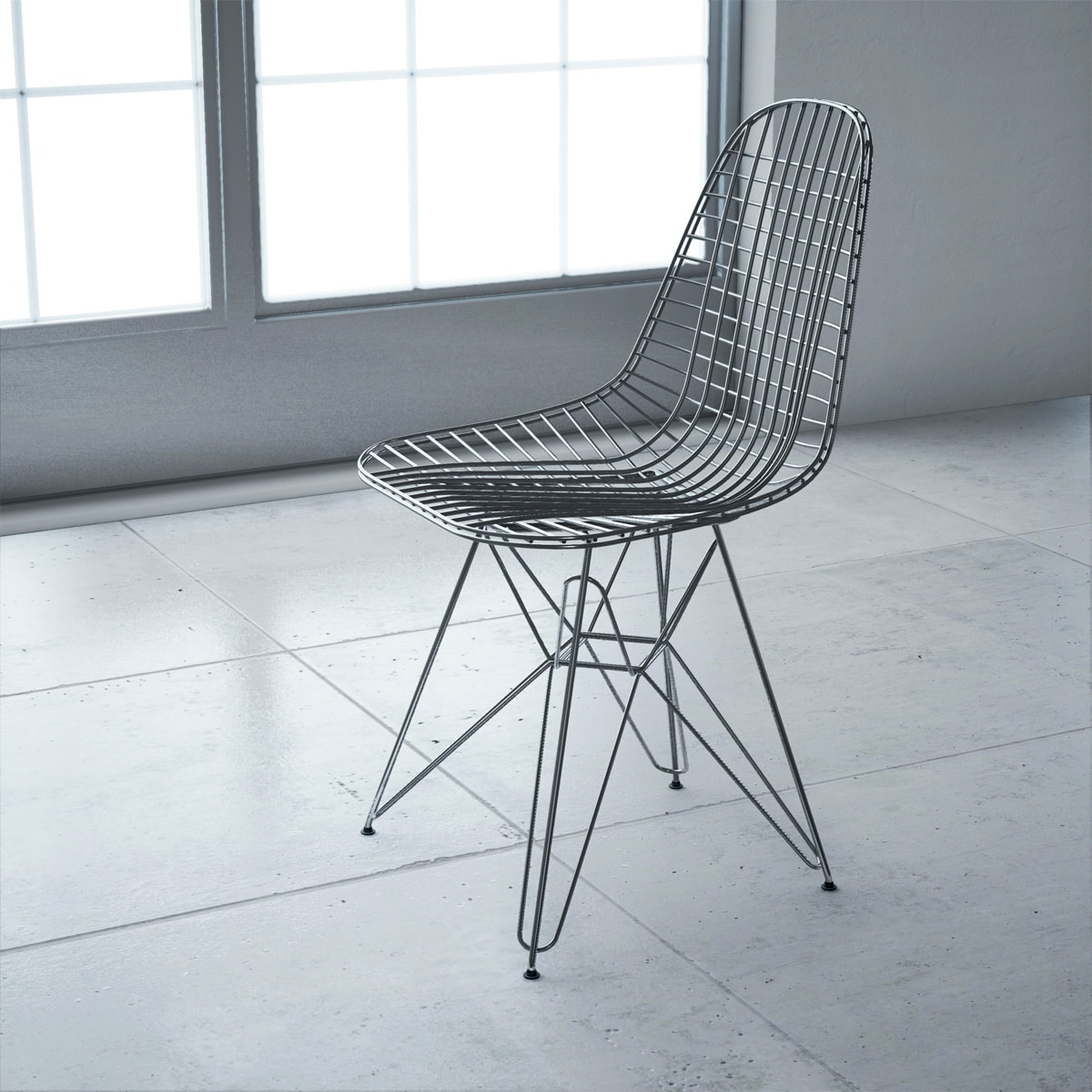 DKR 單椅結合了 Wire Chair 的網狀金屬椅座搭配鐵塔椅腳。