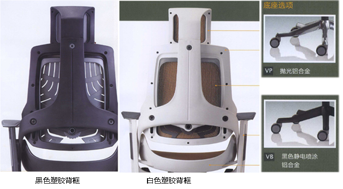 1、头枕,可调节高度;聚丙烯注塑成型白色(黑色)外壳和灰色内壳(100%可循环再生)。2、靠背,可调节高度和腰垫深度;聚丙烯注塑成型白色(黑色)外壳和灰色内壳、表面材质可先用网布或布面或塑胶等材质。